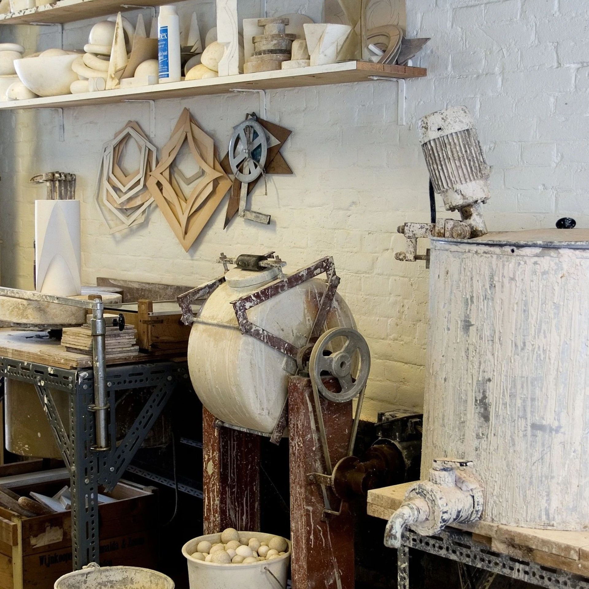 De verhuizing van het atelier van Rotterdam naar Leeuwarden was een hele onderneming. De core business van het museum is het maken van tentoonstellingen, van keramiek die áf is. Maar in dit project zou het juist gaan om keramiek in wording, om vazen in diverse stadia van afwerking, en om al die materialen, gereedschappen en apparatuur die nodig zijn om keramiek mee te kunnen maken: de grondstoffen voor de klei, de metaaloxiden voor de glazuren, de molens voor het mengen, de draaischijf, de gietmallen, de spuitcabine, de oven en ga zo maar door. Dat vergt een andere aanpak.