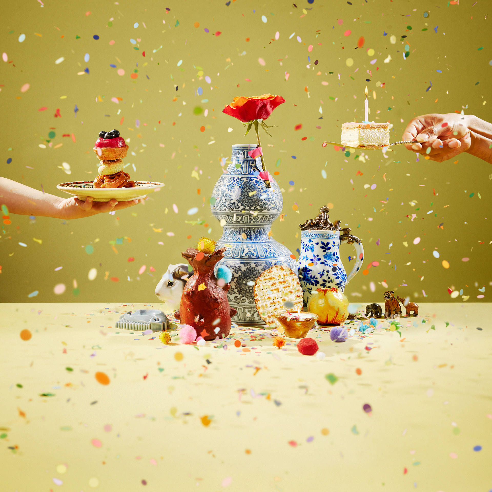 Anhand von zwölf verschiedenen Festen zeichnet der Prinzessinnenhof ein reiches Bild persönlicher, religiöser und kultureller Feste und Gedenkfeiern, die wichtige Momente des Lebens markieren. Die Ausstellung zeigt das Kinderfest, das chinesische Neujahrsfest, den Karneval, Pessach, das Studentenfest, den Geburtstag, eine Selamatan, eine Hochzeit, Eid al-Fitr (Zuckerfest), Ketikoti, Diwali und Weihnachten. Die Feste sind sehr unterschiedlich, aber Essen und Trinken spielen fast immer eine wichtige Rolle, ebenso wie die Keramik. Haben Sie etwas zu feiern? Dann holen Sie das schönste Geschirr aus dem Schrank. Oder nur das eine (leicht beschädigte) Geschirr, das Sie noch von Ihrer Großmutter bekommen haben. Genau diese persönlichen Geschichten bilden den Ausgangspunkt der assoziativen Ausstellung, die zwölf Installationen mit vielen Keramiken aus dem Museumsdepot sowie liebgewonnenen Gegenständen von Feiernden aus dem ganzen Land zeigt. In der Ausstellung erzählen sie in Audiogeschichten alles über ihre Feste und Traditionen. Außerdem wurde die Ausstellung um interaktive Elemente erweitert. Teilen Sie Ihre besten Festerlebnisse auf einer Studentenzimmertür, decken Sie einen königlichen Tisch, dekorieren Sie Ihre eigene Krippe und machen Sie ein besonders festliches Selfie in der Photobox.
