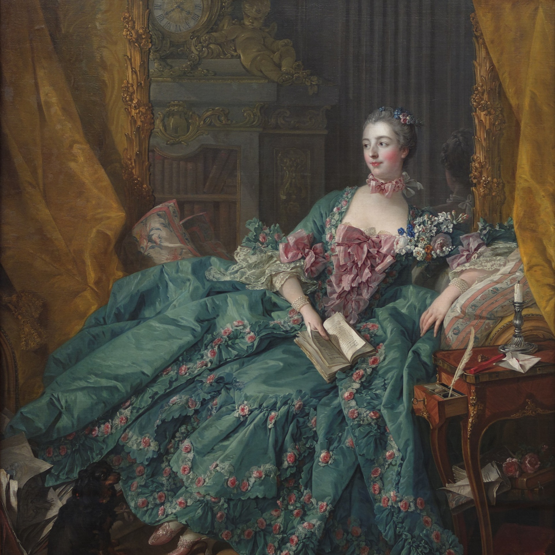 In 1745, the crown prince of France married. A grand costume ball took place at the Palace of Versailles, which was also attended by Jeanne-Antoinette, dressed as a shepherdess. Louis XV (1710-1774) was dressed as an ornamented yew tree, in the company of seven other men wearing the same costume. This shared disguise allowed the king to move quite anonymously among the guests. It was on this evening that a shepherdess and a yew tree, without masks, happily in a conversation, were first spotted together. Not long after, Madame d'Etoiles was installed as Louis XV's new mistress and continued to live as the Marquise de Pompadour. Louis XV and Madame de Pompadour developed a particularly intimate relationship. Over the years her role evolved from that of a mistress to that of an intimate friend, confidant, advisor, uncrowned minister of culture and "godmother of rococo.