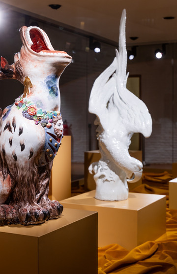 The Porcelain Fever exhibition takes visitors through six regally designed rooms, where they will encounter the earliest experiment from Italy, Augustus’ frenzied amassing of Asian porcelain and Meissen’s first experiments, as well as a life-size zoo. Visitors not only come face to face with Augustus the Strong and Madame de Pompadour, but also other European monarchs and the porcelain that connected them. The exhibition ends in the splendour of the French court, resplendent with flowers, ornate frames, soft colours and painstaking details. The spatial design of the exhibition is by Tatyana van Walsum; the graphic design by Marline Bakker-Glamcult Studio.