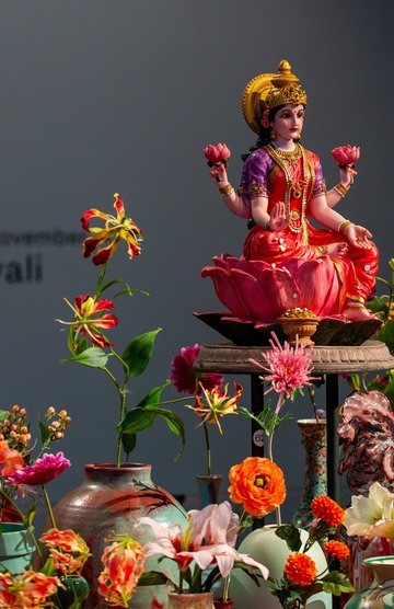 Tijdens Divali verwelkomen de vierders een bijzondere gast: Lakshmi, de belichaming van welvaart, geluk en licht. Huizen worden schoongemaakt en lichtjes (dia’s) worden aangestoken om de godin te verwelkomen. Lakshmi is goed te herkennen aan haar vier armen. Twee ervan houden een lotus vast, de andere twee liggen vrijgevig open.