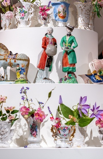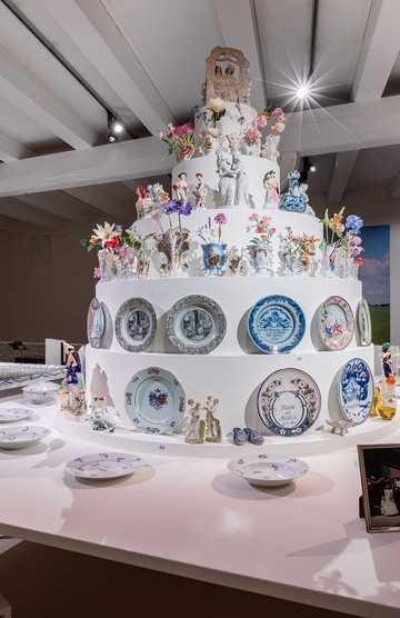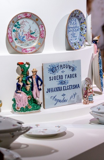 Al eeuwenlang leggen stellen hun huwelijk vast op serviezen. Op deze tafel staat bijvoorbeeld het bord van Jan van der Mark en Anna Nieuwlant, getrouwd in 1794, maar ook dat van Frank en Mirella. Zij trouwden tweehonderd jaar later. Ook beroemde stellen zijn van de partij: ter gelegenheid van het huwelijk van Koning Edward VII en Koningin Alexandra werd een souvenir gemaakt.